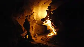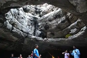 The entrance pit was originally smaller than what one sees today. It has been broadened as part of development of the caves to install the staircase to allow visitors to descend and ascend easily.