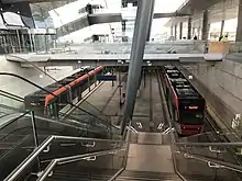 The Bergen Light Rail has its southern terminus at the airport, the station is in the basement outdoor. This is the cheapest option for travelling downtown since it charges the regular public transport fares (kr 37 for an adult single ticket, kr 19 for children and seniors). The light rail runs very frequently, from 05:00 to past 00:00, with up to 12 departures an hour, but it is a stopping service and takes 45 minutes to its final stop at Byparken. The only other public transit line is bus line 23, which runs to the western neighborhoods of Søreide and Loddefjord. Line 23 runs only in the morning and evening rush hours Mondays to Fridays.