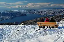 - From Bryggen area, Mt. Fløyen rises steeply. The slopes of Mt. Fløyen are dominated by wooden residential buildings, some among the finest and most expensive in town.