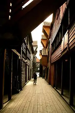 Because of a long tradition of wood building even in cramped areas like Bergen, the city has been destroyed several times by fire. In 1702 90 % of the city was destroyed including Bryggen.