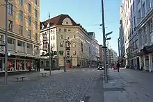 The western shore of the inner harbour were developed later and became the modern city centre. This shore was known as Stranden ("the Strand") and was dominated by Norwegians, while the Hanseatic merchants dominated the eastern shore. Strandgaten became the main shopping street for locals and visitors from the hinterland. Strandgaten was presumably established in the middle ages and the middle section is basically unchanged in the last several hundred years.