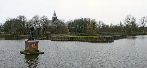 The village of Egmond aan den Hoef (Egmond-at-the Manor), grew around the manor of the local nobles. Later a substantial castle was built: it was destroyed three times, the last time in 1573, also by Diederik Sonoy. The surviving ruins were demolished in the early 19th century, but the castle foundations and moat were re-excavated in the 1930s, and are now visible in a park. The castle chapel (Slotkapel, 1229) survives.