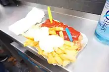 A staple in Berlin is currywurst for around €3 (April 2022). It's a bratwurst covered in ketchup and curry powder. You can find them all over Berlin by street vendors. It's a must try when in Berlin. Two renowned currywurst stands are "Konnopke's Imbiss" below Eberswalder Straße U-Bahn station on line 2 and "Curry 36" opposite the Mehringdamm U-Bahn station in Kreuzberg (only two stops south of Checkpoint Charlie). Both of these offer far friendlier service than many of Berlin's more upmarket eateries.