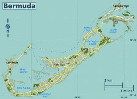| Warwick Parish Includes Darrell's Island, Hawkins Island, Long Island, Marshall's Island, and Warwick Camp. |
