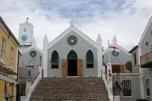 | St. George's Parish Together with the town of 🌍 St. George's they stand on the eponymous island, at Bermuda's northeasternmost part. Many popular beaches are here, such as Tobacco Bay, Achille's Bay, and St. Catherine's Beach. Most visitors arriving by air land here at the L.F. Wade International Airport. On the St. George's Island is the Town of St. George, the first capital, a scenic UNESCO World Heritage Site, and the oldest continually inhabited British settlement in the New World. It boasts small winding streets with typical British Colonial architecture with fountains, gardens and squares, cobbled streets and plazas. |
