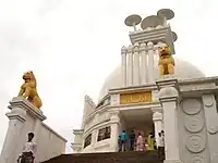 - 🌍 Chausathi Jogini Temple (Odia: ଚଉଷଠି ଯୋଗିନୀ ମନ୍ଦିର), Hirapur. Chaushat Yogani Temple or the temple of 64 yoganis is 20 km south east of Bhubaneswar in the village of Hirapur. In 1953 archaeologists and historian Kedarnath Mohapatra of Odisha State Museum pieced together the sandstone blocks to reconstruct the temple. It consists of a circular open-air structure with a small square central pavilion. According to legend in order to defeat a demon goddess Durga once took the form of 64 yoganis to defeat a demon. Once victorious, the yoganis requested Devi Durga to construct a temple in their honor, hence the concept of Chaushat Yogani Temple. There are five Chaushat Yogani Temples in India. Nothing much is known about the original date of construction of the temple near Bhubaneswar. Some scholar opine that the temple was constructed by Queen Hiradei of the Bhauma dynasty during the 8th – 9th century CE, as the nearby village of Hirapur (originally Hiradeipur) was named after her, while the other suggest a slightly later date of 11th century CE. The outer walls of the circular temple rise to a height of 2 m. The entrance is on the east and is flanked with statues of two guards (darpal). The outer wall has nice niches housing the images of nine Katayani, each of which stands on a served head flanked with digs. The Katayani are topped with an unbrella and each holds a blade as if the beheading has just happened. The inner wall has sixty niches housing sixty yogani statues. The central square pavilion has arches on each side, which are flanked on both sides with statues. Out of the eight statues in the pavilion three are of yoganis (one yogani statue is missing) and the remaining four are of Bhairavas.