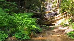 A large valley in the Santa Cruz mountains, the "big basin" is a watershed whose streams flow into the Pacific Ocean. The mountains trap the coastal fog and rain, providing an ideal climate for the redwoods. Though wet and chilly in the winter, the forest is warm and dry during the summer and fall months.