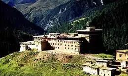 The Tibetan Colony: In 1966 the third Neten Chokling (1928-1973), an incarnate lama of the Nyingma lineage of Tibetan Buddhism, brought his family and a small entourage to Bir. With the help of foreign aid Neten Chokling purchased over 200 acres of land and established a Tibetan settlement where 300 Tibetan families were given land to build houses. At this time Chokling Rinpoche also started building in Bir a new Neten monastery and disciples who had followed him into India formed its first sangha. When the third Chokling Rinpoche passed away in 1973, his eldest son, Orgyen Tobgyal Rinpoche (b 1951), assumed responsibility for completing his father’s vision. The fourth Neten Chokling incarnation was born in 1973 in Bhutan and brought to Bir at a young age where the family of the third Chokling took him under their wings. In 2004 full responsibility for Pema Ewam Chögar Gyurme Ling Monastery in Bir was passed to the fourth Neten Chokling. The monastery, now a place of study and practice for over 120 monks, served as the setting for Khyentse Norbu’s 1999 feature film The Cup.