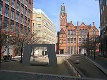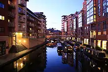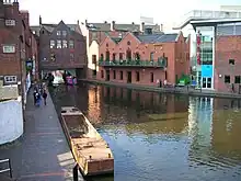 - Westside – extends southwest of New Street and beyond the former Inner Ringroad, and includes much of the remaining canals in central Birmingham. Alongside them, much new development took place, including civic buildings such as the International Convention Centre and Library of Birmingham, and multi-functional commercial projects such as Brindleyplace or The Mailbox