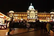 Visitors may enjoy the walk from the International Convention Centre (ICC) and the Symphony Hall on the top of Broad Street to the Bull Ring shopping complex, which takes around twenty minutes and may involve only one easy surface road-crossing. From the ICC, you walk east by the Repertory Theatre and Library of Birmingham in Centenary Square; then through the site of the former Paradise Forum (as of 2018, a building site) to Chamberlain Square; with the Museum and Art Gallery to your left and the Grade I-listed Town Hall on your right, you make your way to the spacious Victoria Square. At Victoria Square, you will find the Town Hall to the west, the Council Offices to the north, and the old Head Post Office to the South; the path you want to the Bull Ring is east, down New Street, which is a pedestrianized street lined with shops, stores, and kiosks. About five blocks down New Street, you will come to Corporation Street, the only road crossing you need to make on this walk. A few blocks later, New Street will turn into Rotunda Square. Bearing south towards St. Martin's Church, you will find the 21st-century Bull Ring Shopping Complex to your left and right.
