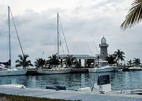 The park's most popular island provides visitors with a variety of facilities. There is a campground with picnic tables and barbecue grills. Additional picnic tables and barbecue grills are located on the south side of the harbor near the open-air pavilion. Saltwater toilets are available, but since there is no freshwater or electricity on the island, there are no sinks or showers. A half-mile hiking trail starts just east of the restrooms. The trail continues to the south end of the island curving back north and emerging near the pavilion and picnic area. The island's crowning glory, and Biscayne National Park's de facto symbol, is the 65 ft (20 m) ornamental lighthouse built by Mark Honeywell, one of the island's former owners, in the 1930s. The lightouse is open intermittently whenever park staff or volunteers are on the island. The observation deck provides a panoramic view of the islands, bay, ocean, and the Miami, Key Biscayne, and the Miami Beach skyline.