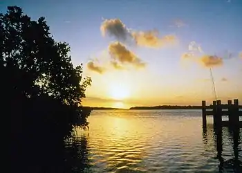 - a narrow fringe of mangrove forest along the mainland shoreline