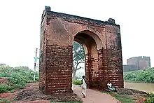 - 🌍 Baro Pathar Darja (Big Stone Gateway, Gate of Old Fort). This is the second of the two surviving gateways of the fortified temple town of Bishnupur. This lies north of the small stone gateway and is much larger in size. Unlike its smaller counterpart, this gateway is not just a passageway but comes with a complete defensive mechanism. The double-tiered gateway comes in with a guard house at the top level whole with narrow slits allowing the archers and the gunmen to fire their shots. North of the gateway is a 17th-century laterite stone chariot, which follows the ekaratna (single-pinacled) style of architecture.