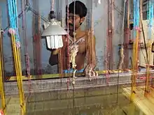 - Saris. Handloom saris are in great demand in Bishnupur. Baluchari Saris are famous Bishnupur products. Inspired by the terracotta panels of the temples the saris are woven with replicas of the terracotta panels depicting stories from epics, and historical and religious texts. Swarnachuri is another famous sari of Bishnupur. It follows the same design, but silk threads are replaced with gold threads. Today modern versions of both saris are available.