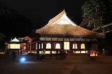 - 🌍 Shizutani School (閑谷学校 Shizutani Gakko), 784 Shizutani, ☏ +81 86-967-1436. Daily 09:00-17:00. Ikeda Mitsumasa, a lord of Okayama, commissioned Tsuda Nagatada to build this school. Completed in 1701, it was open not only to samurai but also farmers — it is said to be the first school in the world to be open to all classes of people. Now designated a national treasure, the school is still in its original condition, and the shining ebony floor is an impressive sight. Naturally, the roof tiles are made with bizen-yaki. The kai (楷) trees (Chinese pistache, nicknamed "trees of learning") on the grounds were brought here from a Confucius Temple in China are lovely, especially during cherry blossom season and the autumn. It's about 10 minutes by taxi from JR Yoshinaga Station (¥1200), or a longer ride from JR Imbe (¥2500). ¥300.