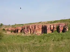 Blue Mounds State Park, in southwestern Minnesota, consists of more than 2,000 acres (810 hectares), mostly tallgrass prairie, but also including a small man-made lake and some woods.