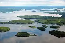 Most of the waterways described here are at least partly labyrinthine archipelagos, with islands, capes, bays and narrows, in addition to the more or less open bodies of water. There are always things to explore off your channel, if you have the time. There are also other kinds of lakes, but those are relevant mostly if you rent a cottage at their shore. Lake shores and islands are popular for summer cottages, private or rentable, but there is so much shore that much of it is left alone.