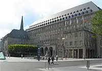 - While standing before the city hall, have a look into the Stadtbahn station too. The south platform is quite impressive: self-supporting ceiling of the concourse: no pillars, light-wells lead daylight underground, and a bridge for line 306 crosses the concourse.