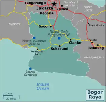 Bogor Raya is a region in Western Java in Indonesia. This travel guide covers the regencies and cities of Bogor, Sukabumi, and Cianjur. While this area is part of the province of West Java, there are proposals to create a separate province, Bogor Raya.