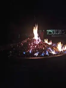 - 🌍 Kayangan Api, Desa Butoh, Ngasem. 24 hours. It is an eternal flame spot nestled among the teak forest, 21 km south of Bojonegoro. In the west side of Kayangan Api, there is a mud pond containing sulphur which in the past was used by Mpu Kriyo Kusumo to make and craft Keris (daggers - often with a curved blade and highly ornamented). Local people still believe that the fire is sacred and use it for important ceremonies.
