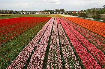 The Bollenstreek (lit. "Bulb Region") is a region in the province of South Holland in the Netherlands. It is famous for its large flower fields that bloom in spring. At the same time of the year, almost one million visitors see the Keukenhof flower gardens in Lisse.
