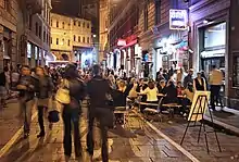 Night life and outdoor cafe tables at Via Guglielmo Marconi