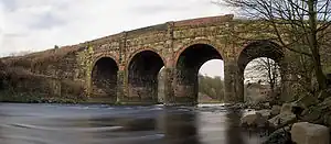 - π Prestolee Aqueduct is a four-arched stone aqueduct built in 1793 to carry the Manchester, Bolton & Bury Canal over the River Irwell. The canal climbed from Manchester over Pendleton to Prestolee where it branched, to Bolton and to Bury. This section is still in water and you can walk along the towpath but it's not navigable: work is under way to partly restore it.