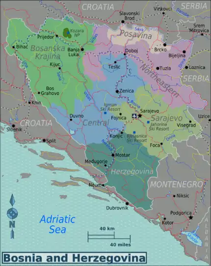 Bosnia and Herzegovina (Bosnian: Bosna i Hercegovina, Босна и Херцеговина, usually shortened to BiH) is a European country on the Balkan Peninsula. It used to be part of Yugoslavia but gained independence in 1992. Mostly mountainous, it has access to a tiny portion of the Adriatic Sea coastline in the south.