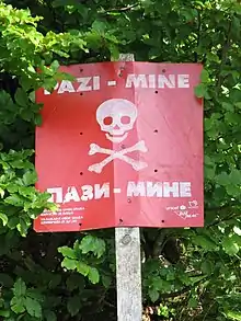 | WARNING: Due to the constant landmine threat it is better not to leave paved roads, even for a pee-break in areas you are not familiar with. | |