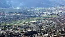 Sarajevo Airport (SJJ IATA) is in the suburb of Butmir and is relatively close to the city centre. There is no direct public transportation, and taxi fares to/from the airport are surprisingly expensive for the short distance - your best bet is to take a taxi to the tram terminus at Ilidža and board the tram for the last part of your journey, cost KM1.80)