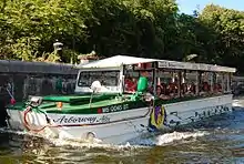 - π Boston Duck Tours, 1 Central Wharf (T: Aquarium), β +1 617 450-0068. Mar-Nov 9AM-sunset. An institution in their own right, these modified World War II DUKWs give a great, breezy, 80-minute tour of the city by land and sea, all in the same vehicle. One of the most famous, or at least most visible, tours in Boston. Visitors will sing songs, quack like a duck, and irritate passing Bostonians going about their business. It doesn't get any more touristy than this. Tours also depart from the Prudential Center and the Museum of Science. $40 adult, $33 seniors, $27 kids 3-11, $11 infants & toddlers. Add $2 per ticket if you book online and $4 if you book over the phone.