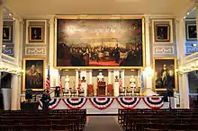 - π Old State House, 206 Washington St (T: State), β +1 617 720-1713. 9AM-5PM daily. Construction financed by the King of England in 1713, this was the longtime seat of government in Boston, and remains its oldest public building. The Boston Massacre took place just in front of the State House, and in 1776 the Declaration of Independence was first read to Bostonians from the balcony. Saved from demolition in 1882, the building has housed numerous tenants and seen many faithful restorations over the years. For example the lion and unicorn statuesβsymbols of the monarchyβwere replaced after being burned during a period of revolutionary zeal in 1776. Every 4th of July, the Declaration of Independence is read aloud once more from the same balcony. $10, seniors and students $8.50. Kids, US Military, and veterans free.