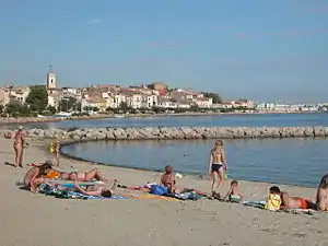 - 🌍 Plagette (a few hundred metres W along avenue Louis Tudesq). This so-called "little beach" is ironically the slightly larger of the two. It has a net for volleyball, and the advantage of much less seaweed. Views over the oyster beds towards Mèze and, on a clear day, the Pyrenees.