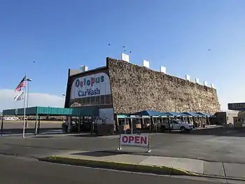 At this point, backtrack down Montgomery and south on Eubank, then make a right on Menaul; you should immediately see the ๐ Octopus Car Wash, where Walt worked a humiliating second job in Season 1 and which Walt and Skyler later purchase as a front for their growing meth empire. This location also serves as an excuse to wash your car in preparation for all the driving you have left to do, and to get an air freshener for the road.