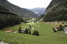 - 🌍 Brennerstraße (B182). The old, and (until the construction of the Brenner Highway) only, road across the pass. It partially follows the old Via Raetia. The main advantage is that you do not have to pay a toll, but what you might save in tolls is more than made up for in lack of speed and higher fuel consumption. The views are nicer and the curvier road is more of a challenge for drivers, though.