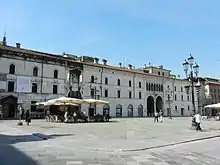 - 🌍 Case del Gambero (Houses of Shrimp), Corso Palestro. Several buildings constructed in the mid-16th century probably by Lodovico Beretta between 1550 and 1555. The façades are decorated by a vast cycle of frescoes painted by Lattanzio Gambara, partly lost, partly moved to the Pinacoteca Tosio Martinengo, but still partly on site, albeit mostly severely degraded. The name "Gambero" is after the hotel Gambero, which was in the vicinity, south of Corso Zanardelli.