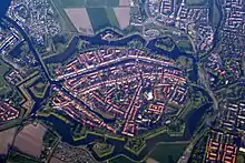 Much of the towns fortifications have survived the test of time, and seen from the air, the typical shape of the traditional Old-Dutch fortification structure is still clearly visible.