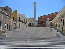 Brindisi (Salentino: Brìnnisi) is a medium-sized city of Apulia, southern Italy. It is the third largest city of Salento Peninsula (the "heel" of the Italian "boot") and one of the busiest ports of the Adriatic Sea.