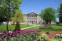 - π Leeds and Grenville County Court House (Brockville Court House), 1 Court House Square. This monumental, grandiose court house is a National Historic Site of Canada overlooking the pictoresque Court House Square. The building contains a jail. The central portion of the building was built 1842-1844 with the west wing added in 1888. The Gaoler's House on the east side was built in 1898.