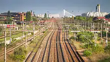 - 🌍 Gara de Nord (Bucharest North Station), București Nord, Piața Gării de Nord 1-3, Sector 1 (2 km north of centre, linked by buses 105, 123, 178, trolleys 62, 79, 85, 86, 93, 96 and tramway 42, 44, 45, 46, metro M1, M4: Gara de Nord), ☏ +40 21 223 0880, +40 21 319 0358. To be precise, this is Gara de Nord A, with all mainline departures. (Gara de Nord B, 500 m north and better known as Basarab, has only suburban lines.) The main collection of ticket kiosks are north side of the hall, towards the exit onto Calea Grivitei and stairs down to the Metro. The station has lots of cafes and ATMs - plus money exchange, but rates here are very poor, walk a couple of blocks for more realistic rates. Left luggage 24/7, several travel agents, a pharmacy, and (essential to Romanians) betting shops. The old mechanical whirlyboard gives glimpses of bygone destinations, such as Minsk.