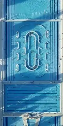 'Széll Kálmán tér' tram: 4 or 6 to 'Margaret Island' stop and walk in across the two lanes wide bridge consol, or from Metro Nyugati tér take bus 26 which stops several times on the Island). 24/7. Margaret Island is connected to the city by Árpád Bridge to the north and Margaret Bridge to the south. The island is mostly covered by landscape parks, and is a popular recreational area. Its medieval ruins are reminders of its importance in the Middle Ages as a religious centre. You can stroll for hours in its large parks. There are Sportcomplex, Outdoor 'Palatinus' bath, minizoo, flower garden, two hotels, pubs. and several clubs and restaurants. For exploration and pastime, four-person cycle cars or small electric cars can be rented for use on the area of the island. Sights on a map. Free. - 🌍 Alfréd Hajós sports pool (Nemzeti Sportuszoda), Margaret Island, Hajós Alfréd sétány (take bus 26 to stop Hajós Alfréd uszoda). An aquatics complex. Built in 1930 according to plan Alfréd Hajós. as a free-standing, flat-roofed, reinforced concrete building. The open air swimming pool built in seven years later. The hall is include elliptical holders. The corners of the east and west facades of the main part decorated with semicirculared avant-corps. The most part of the facede covered with Clinker bricks and decorated with artificial stone's window sill. North from the buildings are pools with diving tower and grandstand for spectators. Under the grandstand can be found the changing rooms. - Both sides of the main facades located flagpoles with carved sedge leaf. There is an archway front of the west facade. Stairs lead to the grandstands from both end of the foyer. Under the gallery of the north side of the building is a small indoor pool. The European LC Championships 1958, 2006 and 2010 took place here. See in do chapter.