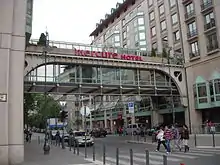 - 🌍 Mercure Budapest Korona, Kecskemeti utca 14 (M3 and M4 Kalvin ter), ☏ +36 1 486 8800. 4-star on the edge of District V, but good transport and far more modern and comfortable than the other Mercure, even featuring a swimming pool. It consists of two buildings, linked by a glazed bridge over Kecskemeti utca.