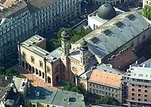 : Astoria), ☏ +36 1 343-0420, avivtravel@gmail.com. Mar-Oct, Su-Th: 10:00-18:00, F: 10:00-16:30; Winter 1.5h shorter. This synagogue is unique because of its size, and its two onion-shaped domes, which are forty-three meters high. Onion domes are typically found on Catholic churches, and Hungary is a very Catholic country. Perhaps Ludwig Förster, the architect, meant for it to blend in a bit. Adults: €8, students: €4, Budapest card: €7, for student: €3.5. - 🌍 Kazinczy Street Synagogue (Sasz-Chevra ortodox nagyzsinagóga, Kazinczy utcai zsinagóga), VII. Kazinczy u. 29-31 (