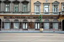 - 🌍 Corinthia Hotel (formerly Grand Hotel Royal), Erzsébet körút 43 (200 m SE of Oktogon metro), ☏ +36 1 479 4000, fax: +36 1 479 4333, budapest@corinthia.com. This 19th C 5-star has reverted to its old name of "Corinthia". Inside, the Royal Spa has been beautifully restored to its original splendour - see also 'do' chapter Double from €200.
