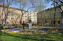 - 🌍 Recreation Centre of Almássy Square (Almássy téri Szabadidőközpont , Almássy téri Úttörő és Ifjúsági Ház, Szabadidőközpont), VII. Almássy tér, 6. Closed. Visit only outside. A modern building designed by Eva Straub and Zoltán Jakab, the interior architect was Paul Somogyi. The five-storey building total floor area is 5,200 m². This has got a 470-person capacity grand hall, a chamber hall for 120 persons, a dance hall, smaller auditoriums, clubs and study circles rooms. There is a 25-m swimming pool on the basement. Within the walls of the leisure center vibrant community life going, but often moved to their programs to the square. Various courses, study groups, recreation programs, sports educations are organized. In addition, art exhibitions, classical music and theater performances, film screenings, dance evenings, pop music concerts are also held. Since 2007 planned rebuild for a hotel.