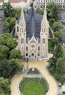 'Keleti pályaudvar' or Bus Nr. 7 (Rákóczi út - Hotel Hungária).), ☏ +36 1 3224 117. masses: - M-Sa 7:30; 18:00, Su 07:30; 09:00; 11:00; 18:00 Confessional system: F 16:00-17:30, Su 09:00- 09:40; 11:00-11:40; 18:00-18:40. Office hours: M W 15:00-18:00, Th 09:00-12:00, 15:00-18:00.. The two south tower of the church height of 76 m, the building width is 21.6 m, length of 62 m, floor area of 1,800 m². Nearly 2,600 people were able to receive. The largest church in the VII. district The building features of the French Gothic style combines with the modern age technology solutions. This is a three- cross-shaped naves church with two towers on the northwest main facade. the temple's main gate and two side entrances lies between the two towers. Above the gate is a statue of St Elizabeth and a Gothic rose window framed with ceramics. The facade are decorated with Statue Figures: St Ladislaus, St Stephen and Mary. - 🌍 Fasori Reformed Church (Fasori református templom), VII. Városligeti fasor 7., ☏ +36 1 3427 311, +36 1 3224 499, hivatal@fasor.hu. Designed by Árkay Aladár. He used English and Finnish architectural effects. The front wall-face is covered by ceramic slabs decorated with motives of folk-art. This is repeated internally, under the organ, on the solid parapet which includes the pulpit. The four vaulted archways framing the interior carry a reinforced concrete structured dome. Musical events.