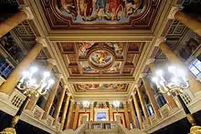 Before entering, take note of the museum's exterior, a fine example of neoclassical architecture, with an exceptional portico. Eight Corinthian columns support a frieze with an ornamental cornice and a large pediment. The pediment features the allegorical figure of Pannonia (Pannonia was the Roman name for the Hungarian lands) sitting with the Hungarian coat of arms on her shield, surrounded on either side by Science and Art.