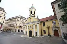 : Fővám tér take trolley 83 to Horváth Mihály tér), ☏ +36 1 3230221, fax: +36 1 3136313, jozsefvaros.plebania@gmail.com. Office hours: M 12:30-16:30, W 08:30-16:30, F 08:30-12:30. Monument. Built in 1797–1798, in copf style according by plan József Tallher, rebuilt by Kasselik Fidél in 1814, remodelled in eclectic style by Elek Barcza in 1891-1895.
