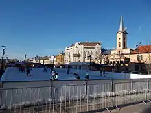 : 'Újpest-Központ' take Tram 1, 12, 14 to 'Angyalföld kocsiszín'), ☏ +36 1 389-0381, piczy@mailbox.hu. - 🌍 Queen of Heavens Parish (Újpesti Egek Kiralynéja Főplébánia), IV. Szent István tér 13 (behind City Hall. -