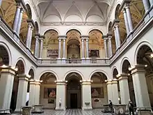 - 🌍 Museum of Fine Arts (Szépművészeti Múzeum), XIV, Dózsa György út 41 (Hősök tere M1 ), ☏ +36 1 469-7100, info@szepmuveszeti.hu. Tu–Su 10:00–18:00. It was built by the plans of Albert Schickedanz and Fülöp Herzog in an eclectic-neoclassical style, between 1900 and 1906. The museum's collection is made up of international art (other than Hungarian), including all periods of European art, and comprises more than 100,000 pieces. It has an incredible range of European artwork from Greek and Roman times to the present. It is best known for its Spanish collection, the largest accumulation of Spanish paintings outside Spain. There is a large Greek and Roman collection, an Egyptian collection, much Italian (also French, German and Dutch) sculpture, including a statue of a man on horseback by da Vinci. The collection is made up of older additions such as those from Buda Castle, the Esterházy and Zichy estates, as well as donations from individual collectors. The museum's collection is made up of six departments: Egyptian, Antique, Old sculpture gallery, Old master paintings gallery, Modern collection, Graphics collection. Adult: 2800 Ft; senior, student: 1400 Ft.